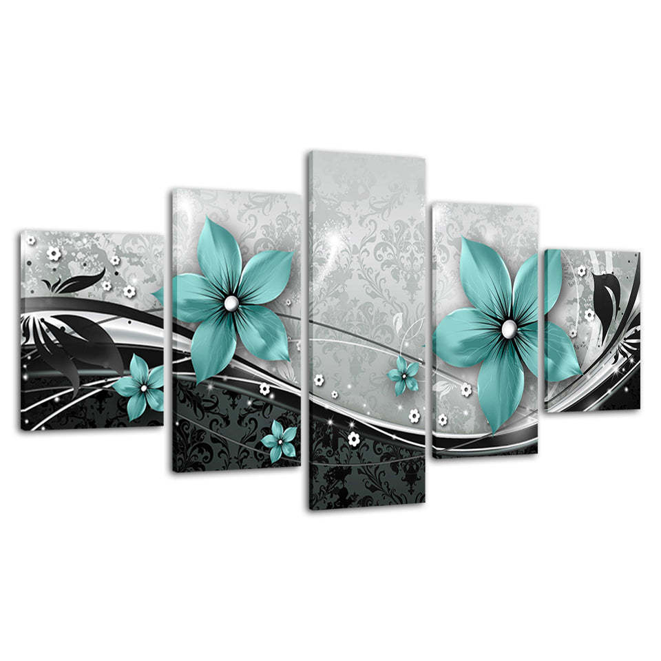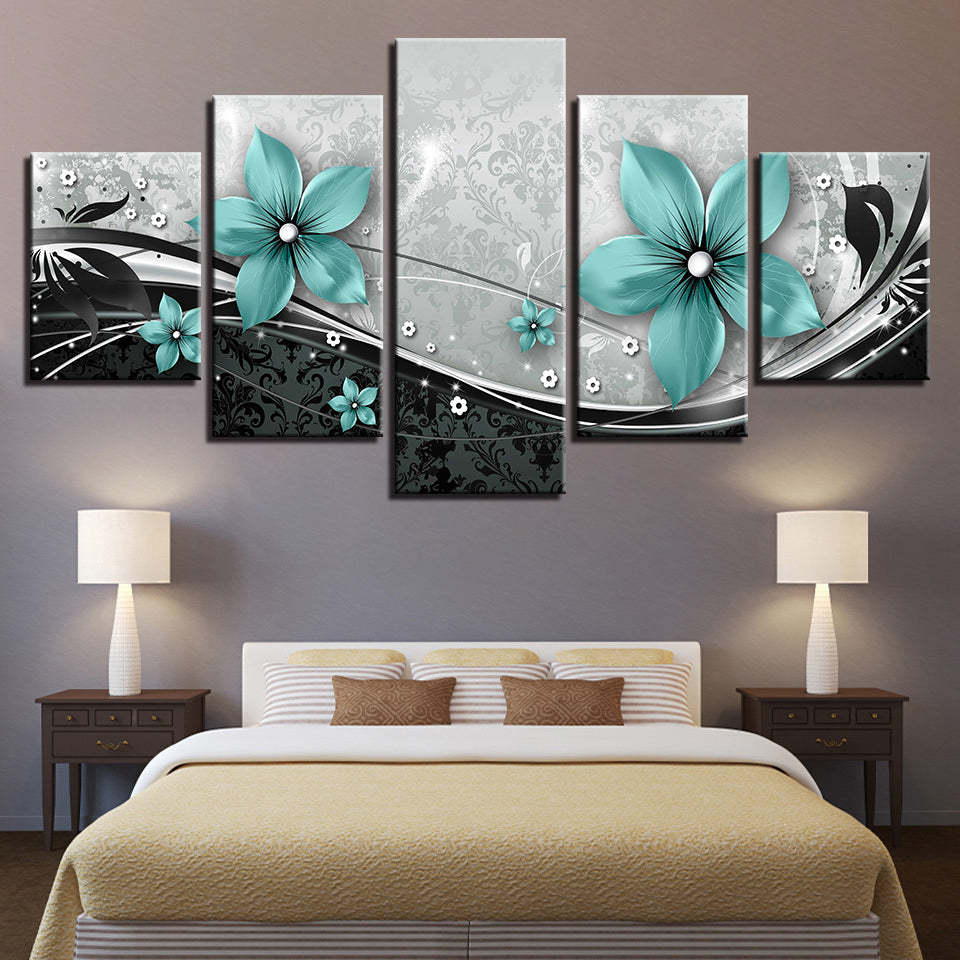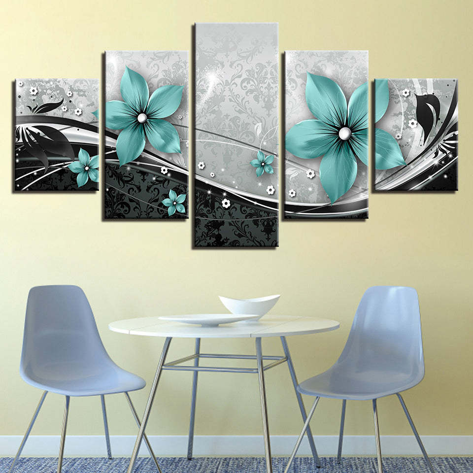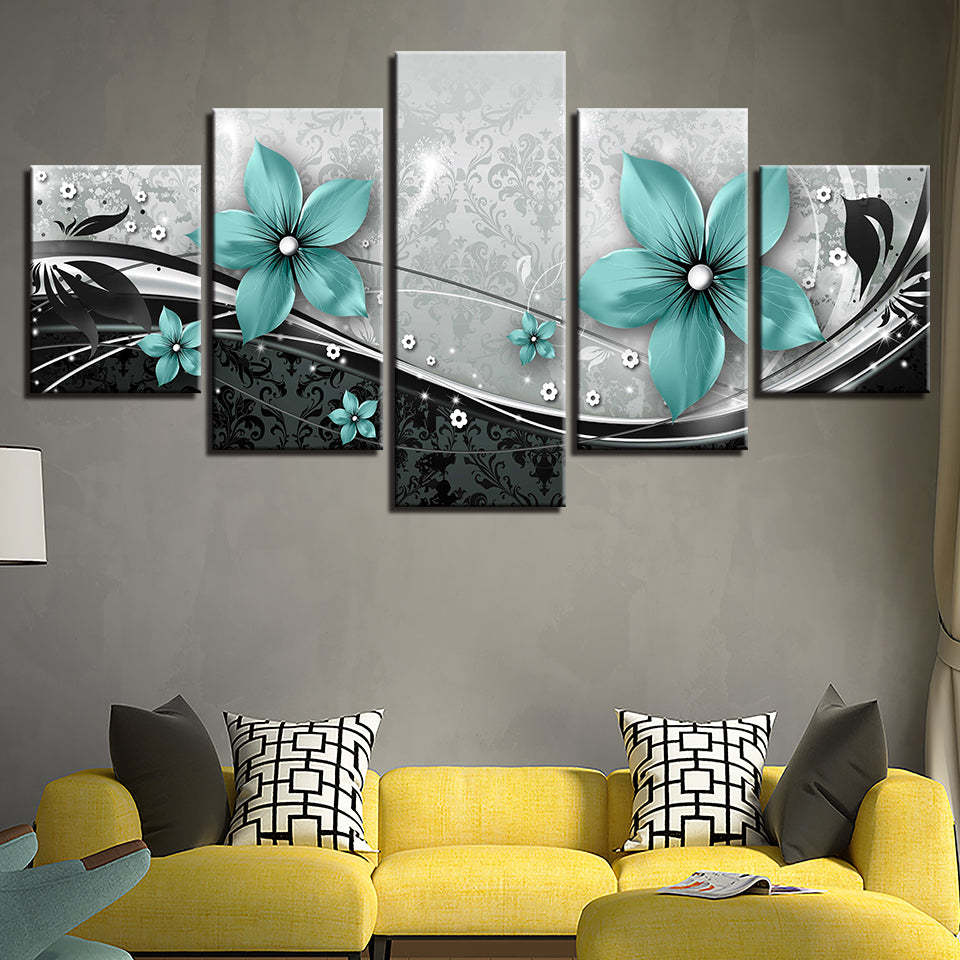 Ornate Blue Flowers 5 Piece - Canvas Wall Art Painting is a premium canvas that adds a peaceful touch to your décor. The canvas features cute blue flowers spun before an ornate wallpaper background.