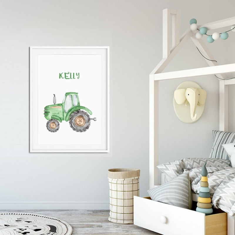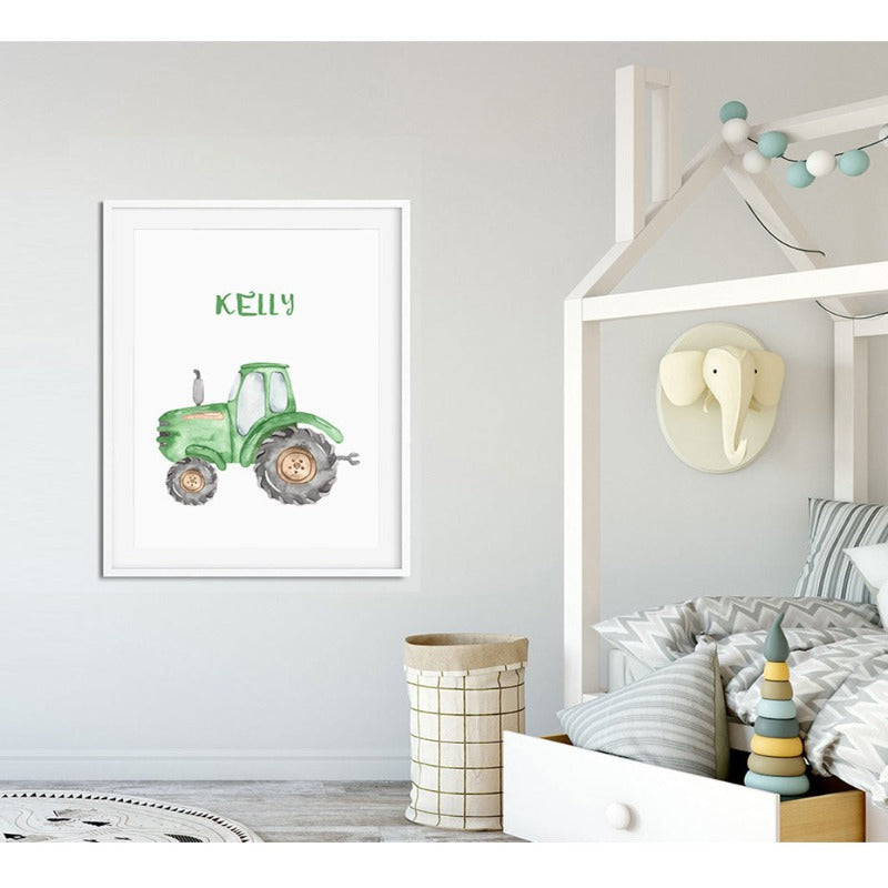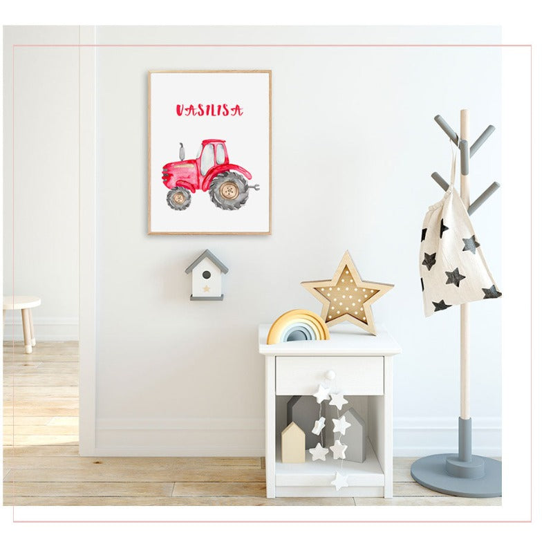 Personalized Name Tractor Boys - Canvas Wall Art Painting is a perfect piece of decor for your kids' room, as it has colored tractors painted on white premium canvas, which adds fun and life to the room. These are loved by kids as well and make any space light up. It is made from high-quality waterproof ink, which makes it long-lasting too.