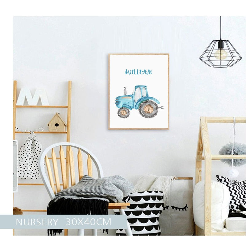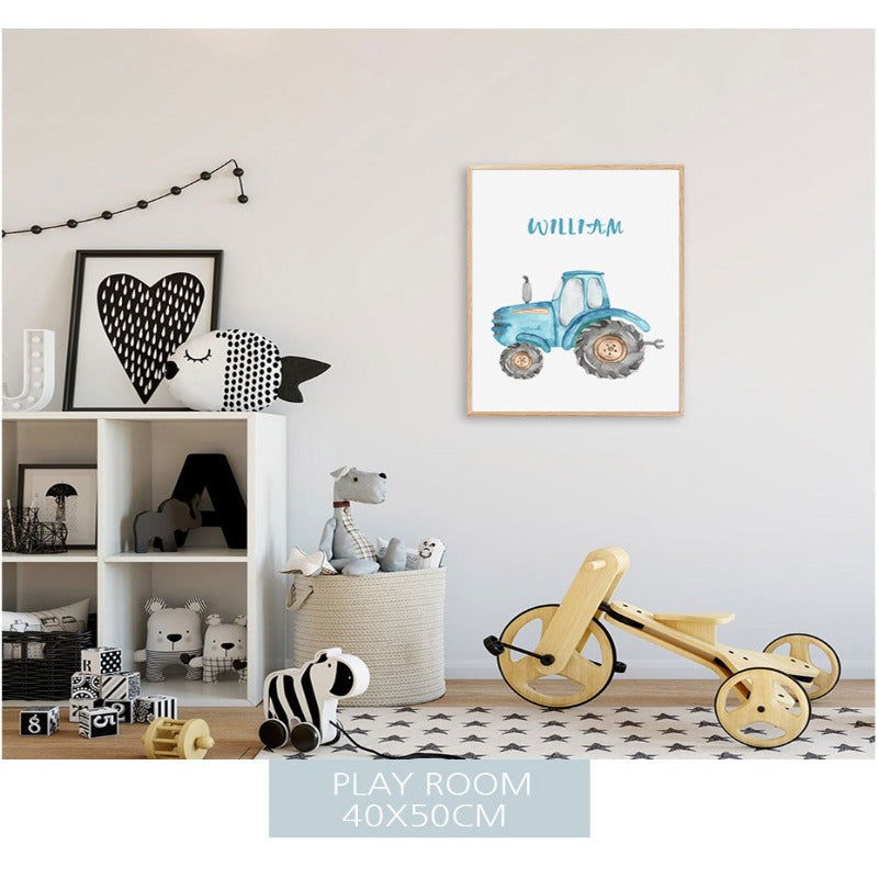 Personalized Name Tractor Boys - Canvas Wall Art Painting