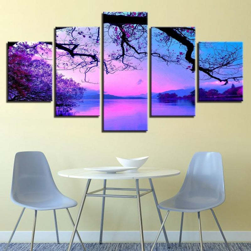 Purple Sunset Trees - Canvas Wall Art Painting is a premium canvas that adds a touch of a calm sunset to your décor.