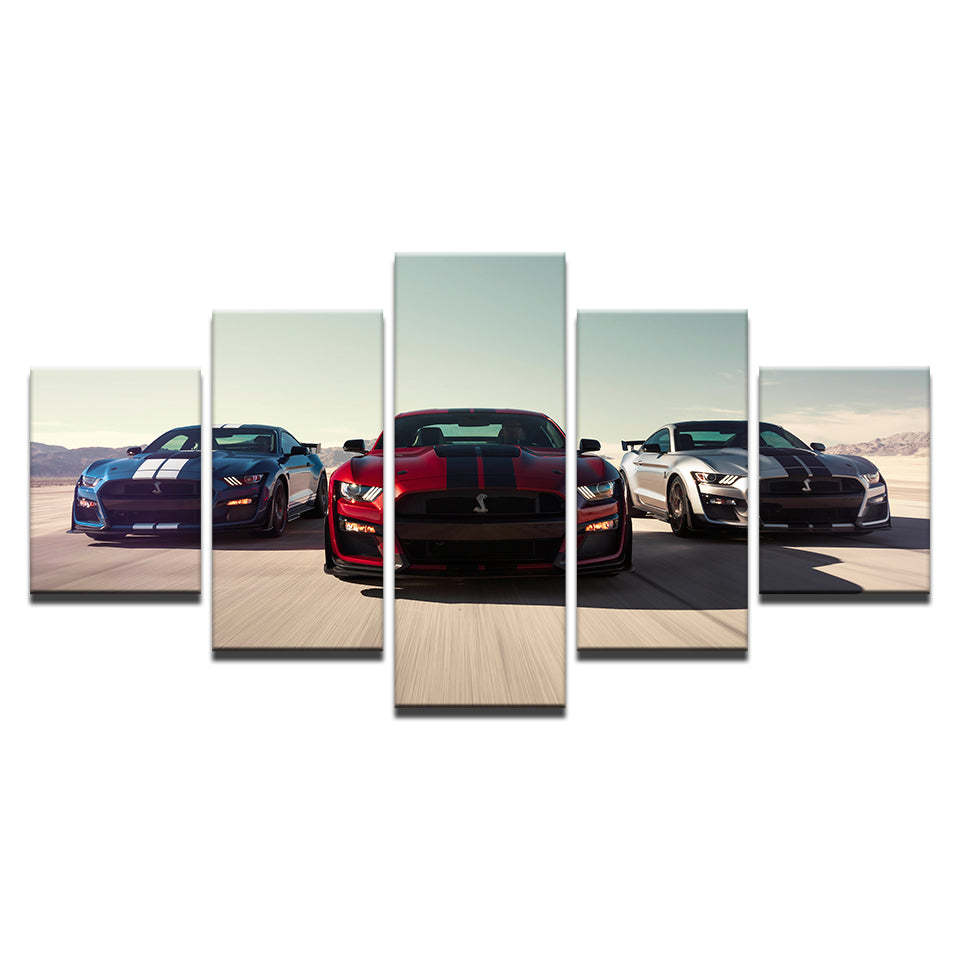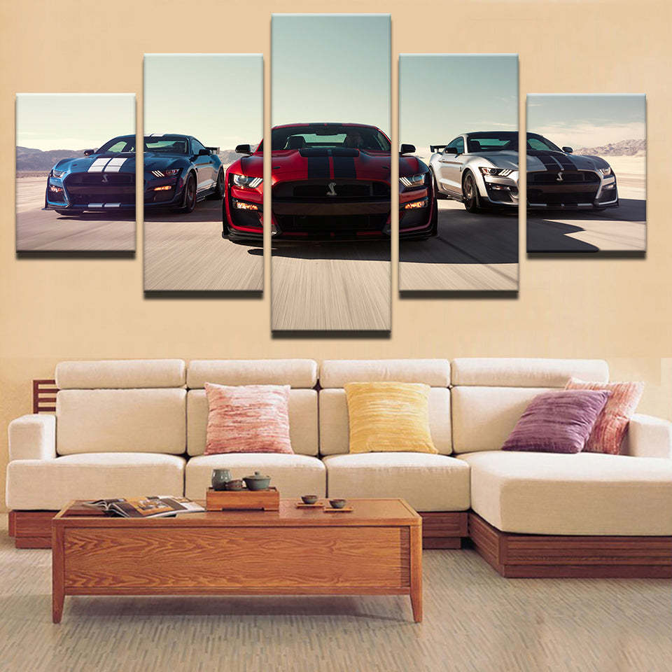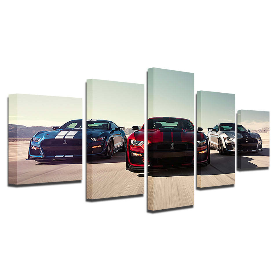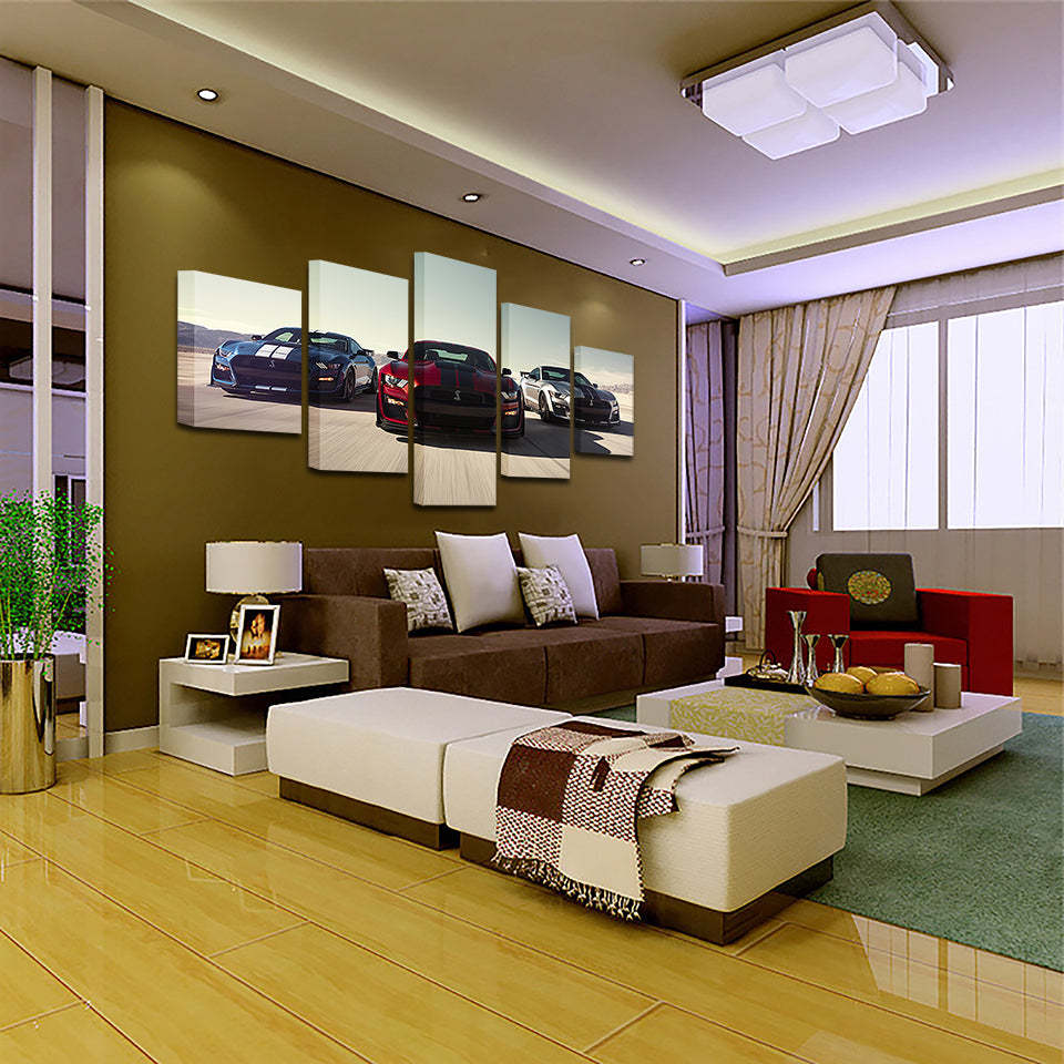 Racing Luxury Cars 5 Piece - Canvas Wall Art Painting is a premium canvas that adds a touch of class to your décor. The canvas features three sports cars racing forwards down a track.