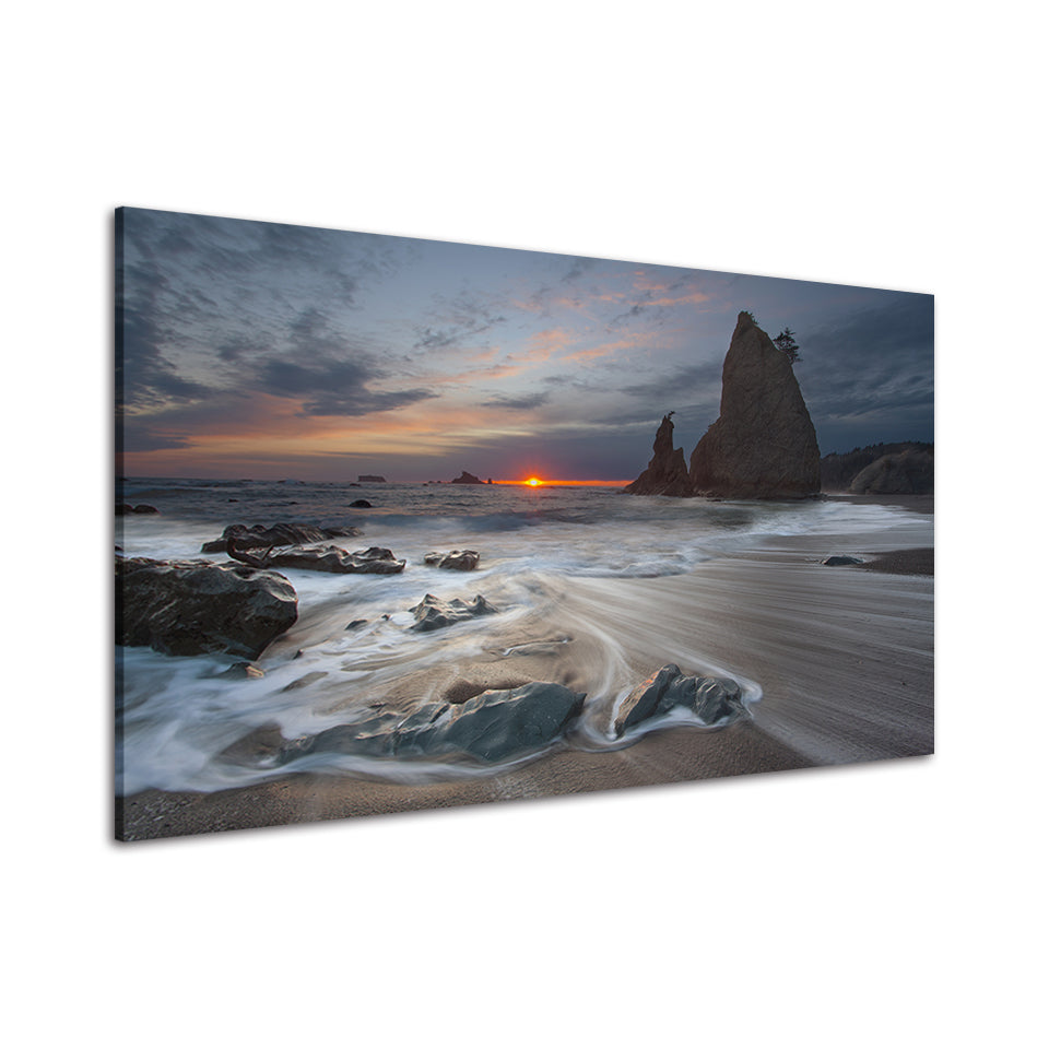 Rocky Beach is a premium canvas that adds a thoughtful touch to your decor. The canvas features an abstract painting showing a rocky beach and an evening sunset that you can hang on your walls.