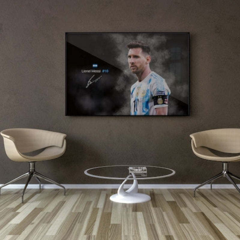 This stunning Rolled Canvas Lionel Messi Poster will be a great addition to any home. This high-quality, durable poster is made from thick, rolled canvas and features a vibrant image of soccer superstar Lionel Messi. The vivid colors of the poster will add a touch of vibrancy to any wall or room. The poster is easy to hang and can be framed or hung as is. It's the perfect way to show your love for soccer and your favorite player.