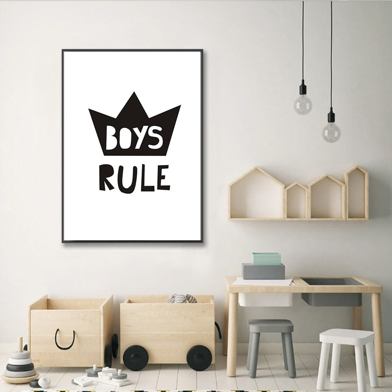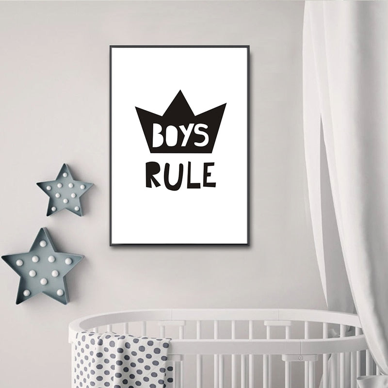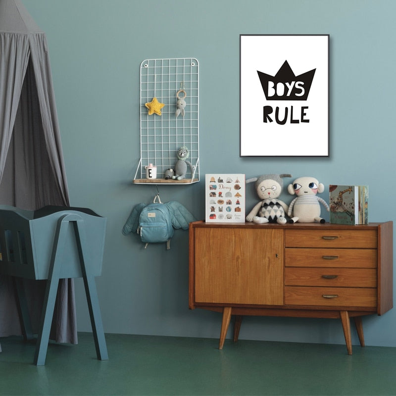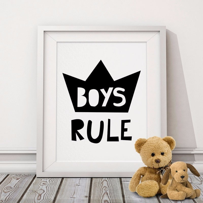 Scandinavia Boys Rule Nursery Decor - Canvas Wall Art Painting