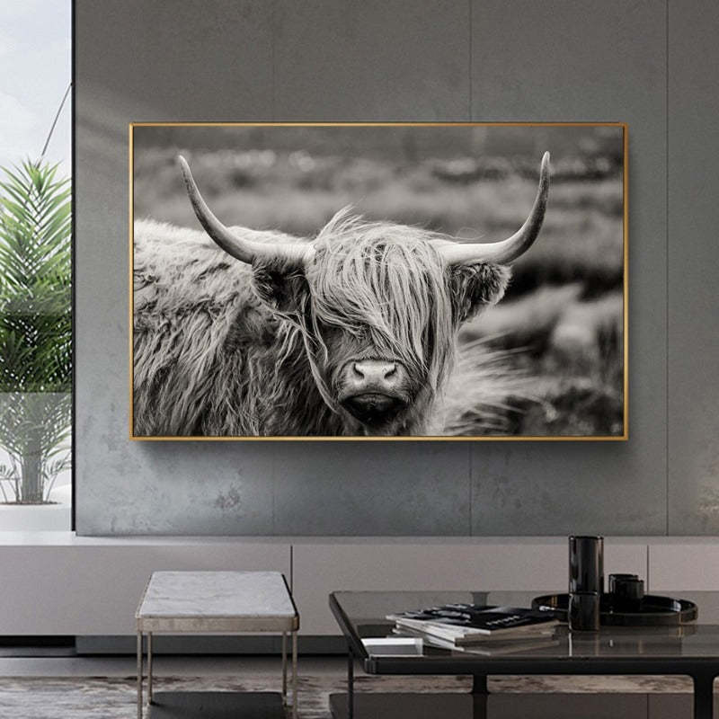 Scottish Highland Catt Cow Yak Animal Poster Wall Art - Canvas Wall Art Painting