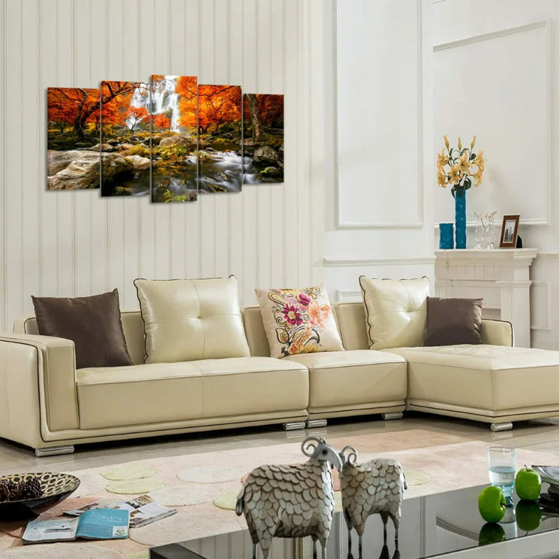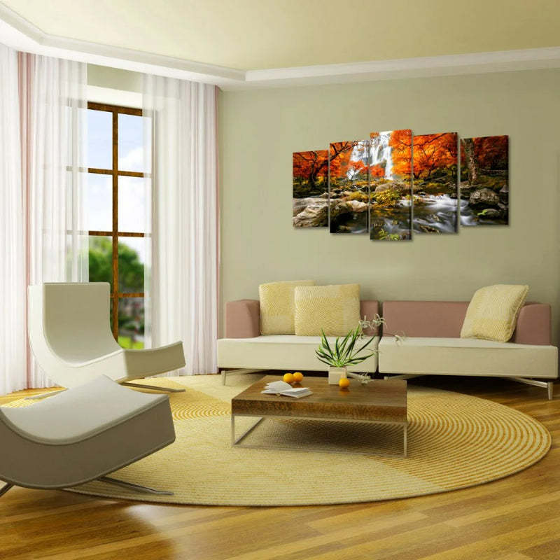 Bring the peacefulness of the forest to your home with this Set Of 5 Autumn Forest Waterfalls Decorative Canvas. They are ideal for any room, from the living room to the bedroom, and are sure to make a statement wherever you choose to display them. The elegant, gallery-wrapped frames make them ready to hang and are a stylish addition to your house interior.