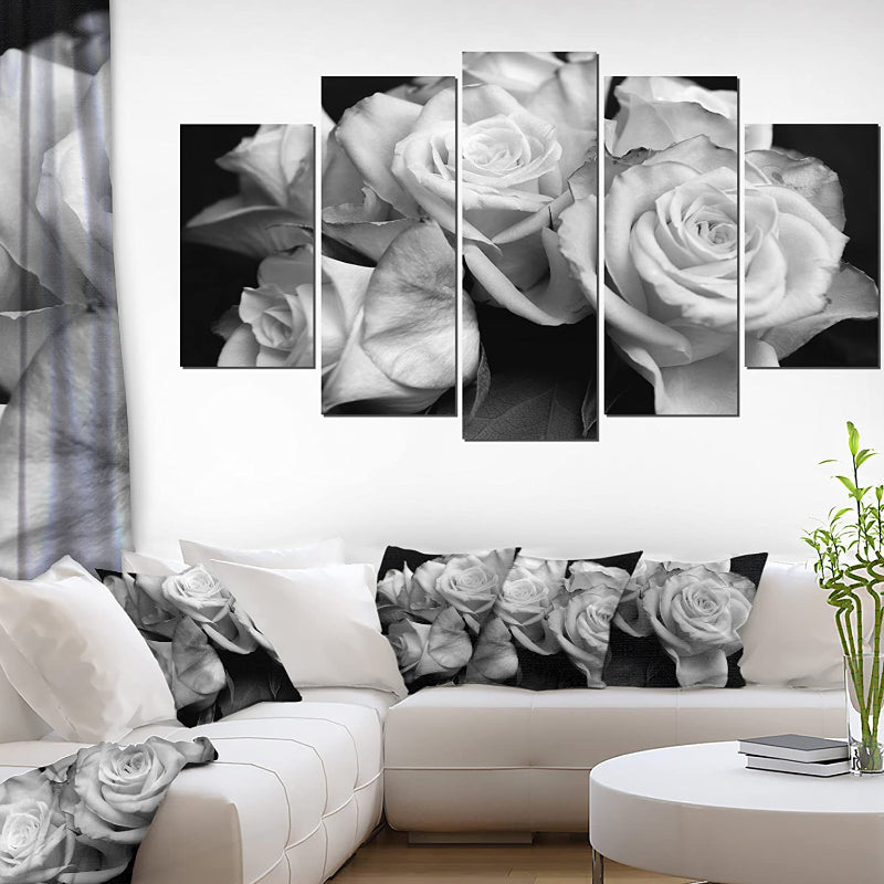 Set Of 5 Black Rose Wall Art Painting has a very calm vibe, the subtle colors on the canvas give it a very impactful appearance. The wall canvas is perfect for your friends and family, it can be placed anywhere in your house. It is very easy to hang since it has a hook mounted on it.