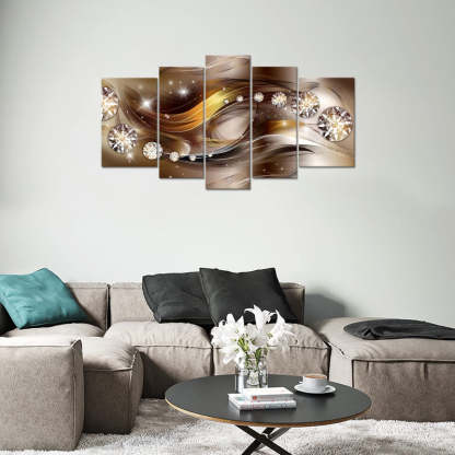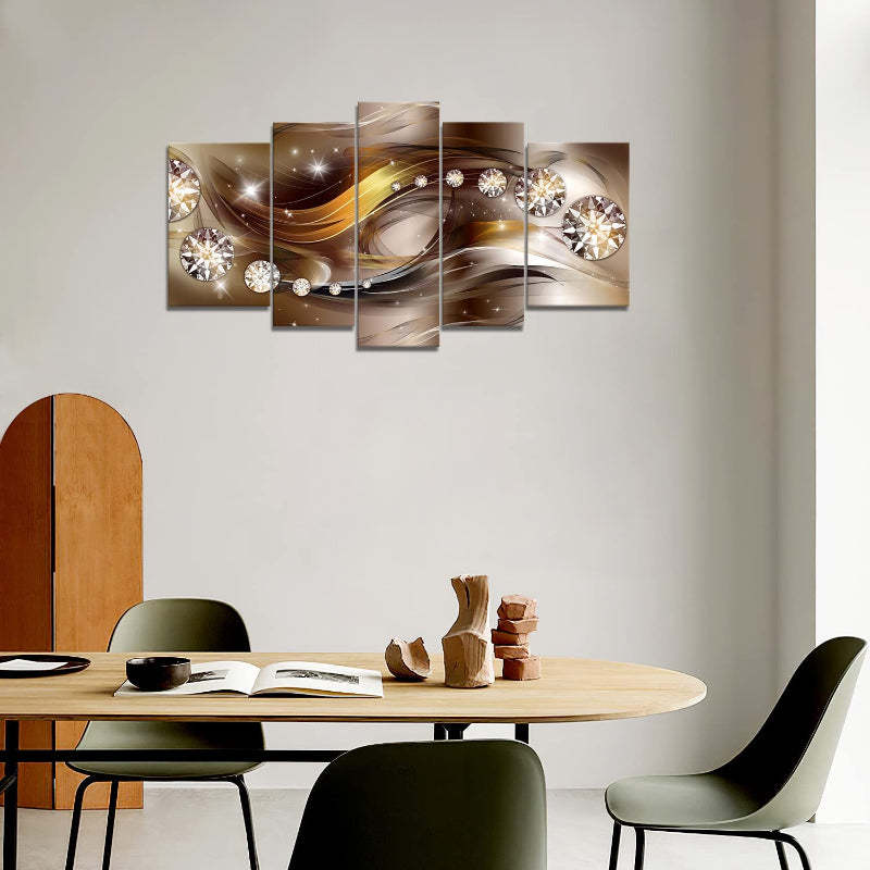 This Set Of 5 Brown Diamonds Canvas Wall Art Painting brings a new style to your living rooms. The artwork has a grace of painting and the patterns in the picture depict an astonishing look to your home. These are easy to clean and the durability will be long-lasting. This set is perfectly designed to hang models.