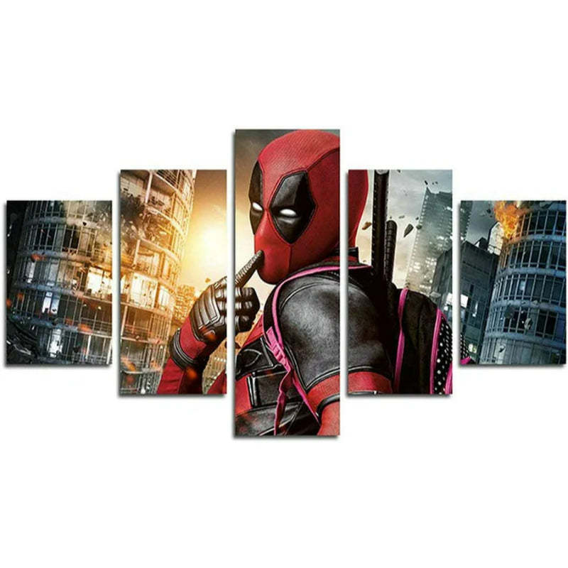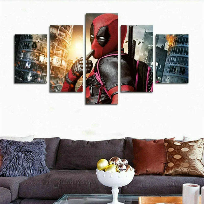Set of 5 Deadpool Movie Wall Canvas features the all-time favorite character which will set the vibe of your room. It is good for your living room, kitchen, office, or any space in your house. The canvas has a special hook mounted on t that makes it ready to hang.