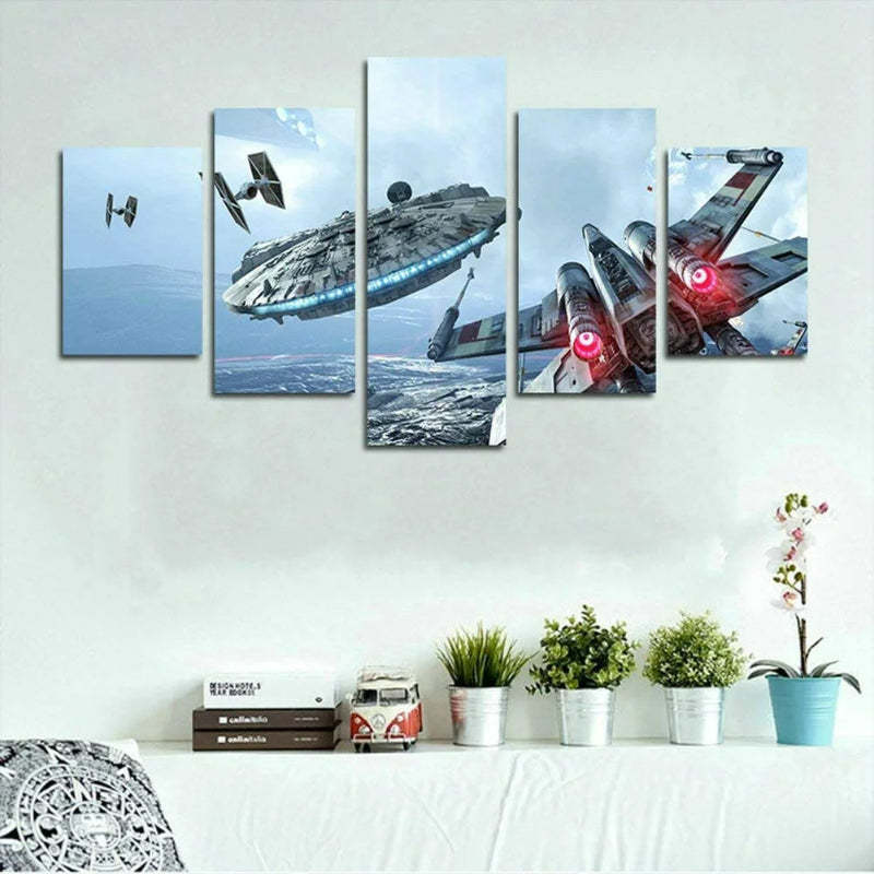 Set of 5 Falcon Wings Wall Canvas is a high-quality canvas that offers to be a great addition to your house. It s also a great gift for your relatives and friends. The painting of the falcon wings has no frame and is divided into five pieces. The canvas also has a hook mounted on it that makes it very easy to hang.