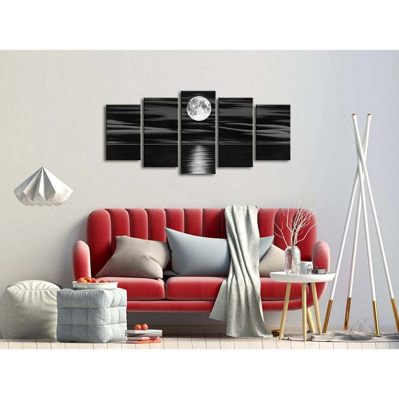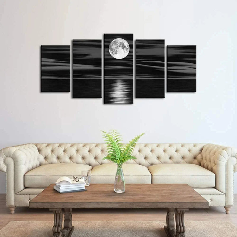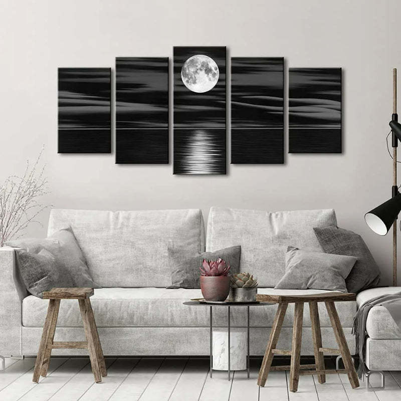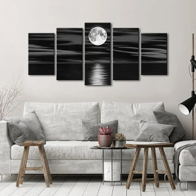 A Set Of 5 Full Moon Decorative Canvas is the perfect addition to any interior. This stunning print delivers a colorful, vibrant finish to any room in your home. It has been stretched tightly over the edges of a sturdy, wooden stretcher bar frame. These amazing canvas can be used for many purposes such as bedroom decoration, living room wall art, or office decoration
