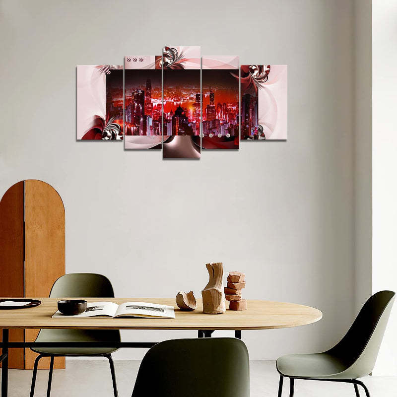 The Set Of 5 Red Cityscape Canvas Wall Art Painting is the ideal gift for any occasion that suits your parlor, room, kitchen, and even office. It is planned so that it is prepared to hang and is top-notch. The print has top quality which will give you an astonishing encounter over the course of your day.