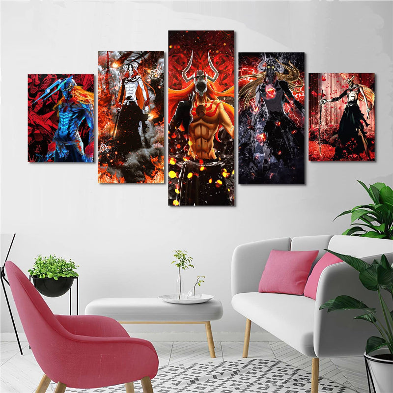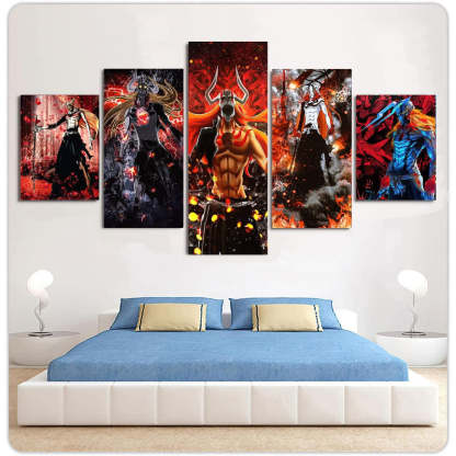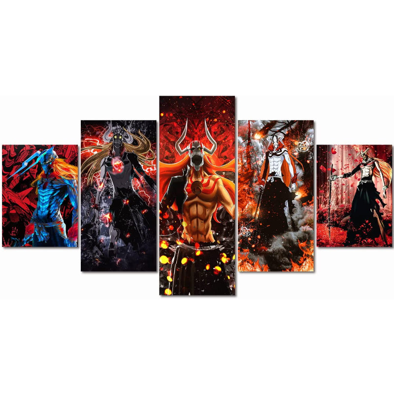 Decorate your walls with our most exclusive Set of 5 Soul Reaper Wall Art Painting! This wonderful wall art comes in a 5-piece canvas set, which is a fantastic choice for remodeling your home. They are built of sturdy wooden bars and are portable. Each panel has its own hook, which lessens the hanging pressure.