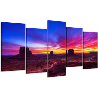 This amazing Set Of 5 Sunrise Monument Valley Wall Art Painting is designed as you like! It is made of a wooden bar connected that considers effortless to hang straight out from the case. The craftsmanship is printed with unrivaled variety precision and high goal on the material of the greatest type.
