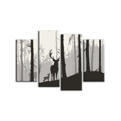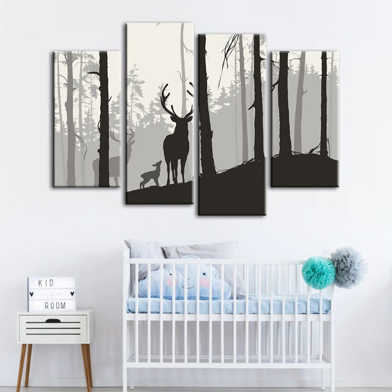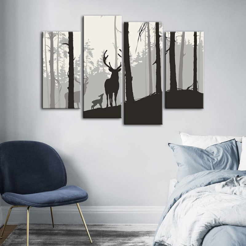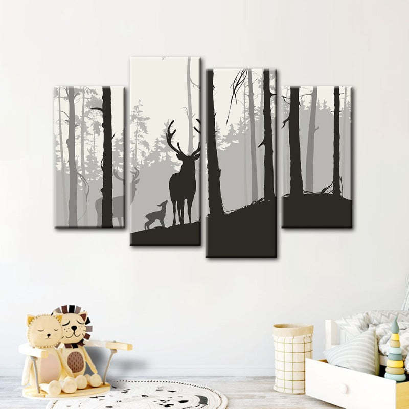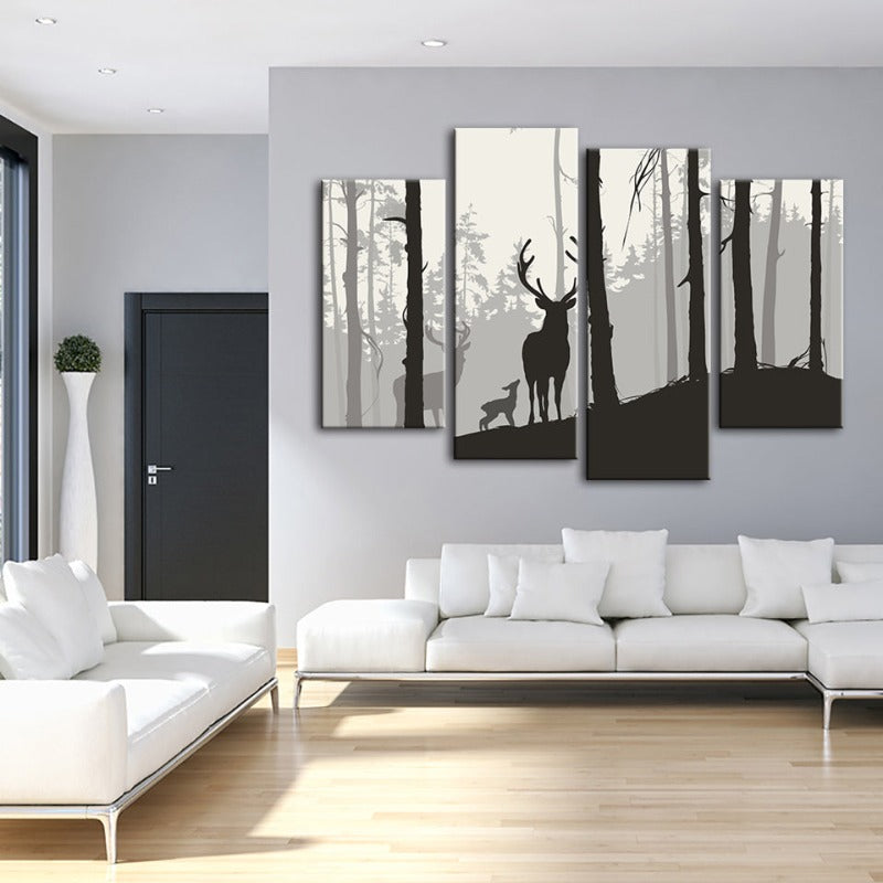 Silhouette Deer Family 4 Piece - Canvas Wall Art Painting is a premium canvas that adds a peaceful touch to your décor. The canvas features a mystical family of deer caught in the woods by the viewer.