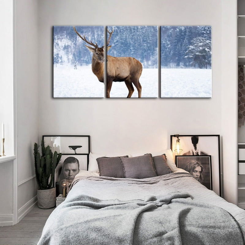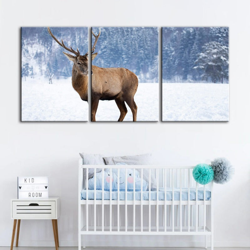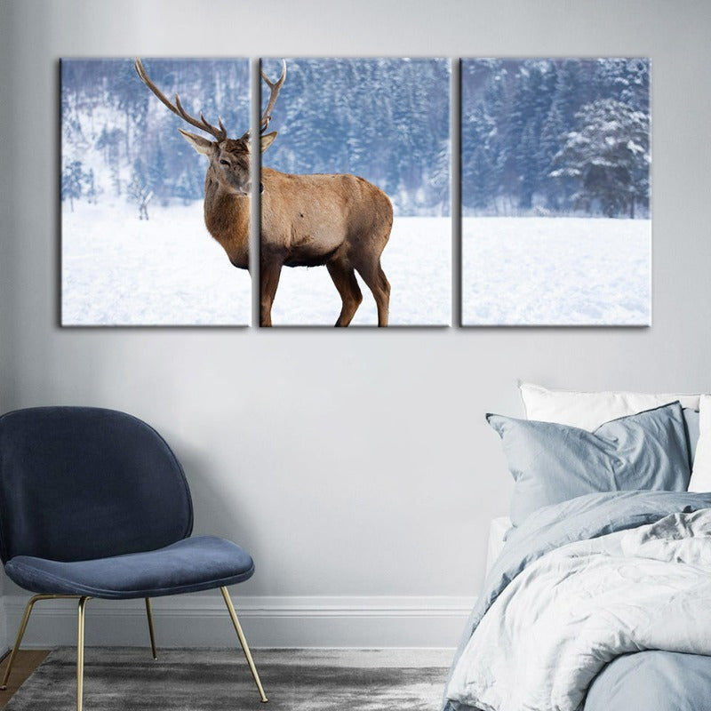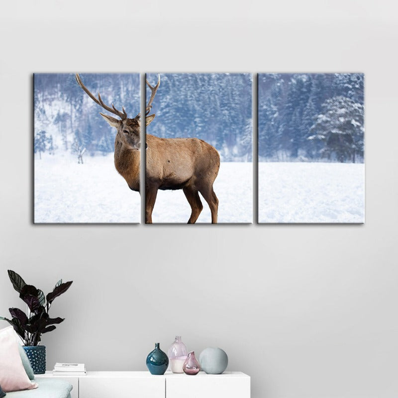 Snowy Landscape Deer-Canvas Wall Art Painting 3 Pieces is a premium canvas that adds a peaceful touch to your décor. The canvas features a stunning lone deer standing amongst a blanket of pure white snow.