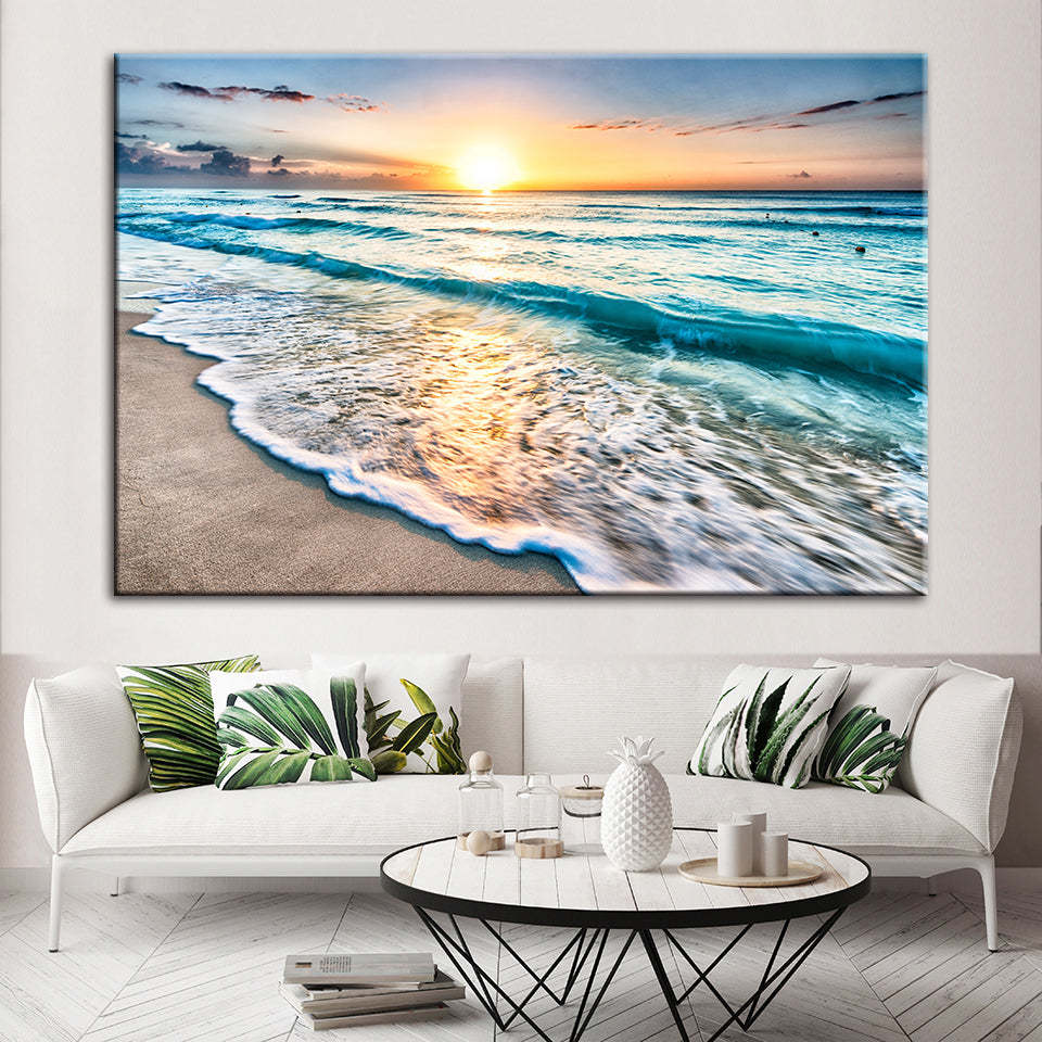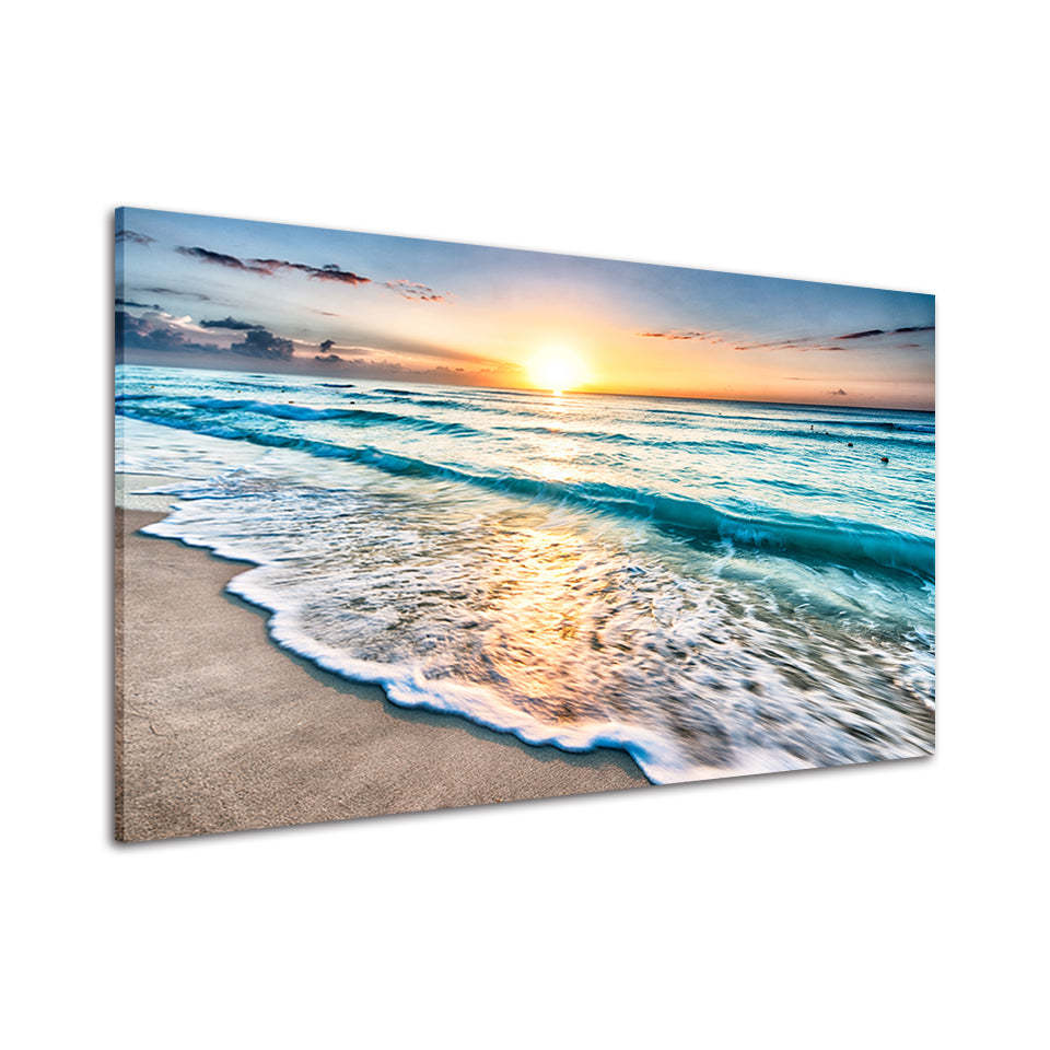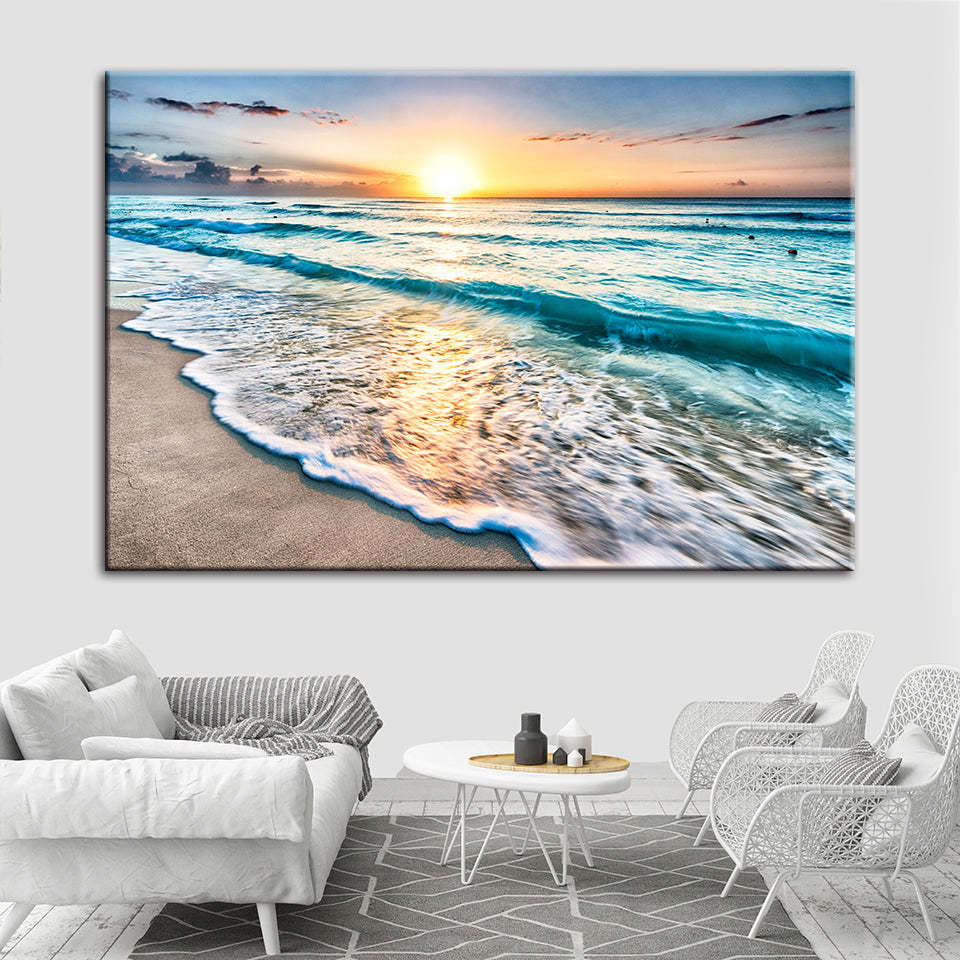 Sunny Florida Beach is a premium canvas that adds a thoughtful touch to your decor. The canvas features an abstract painting showing beautiful waves on a nice summer evening that you can hang on your walls.
