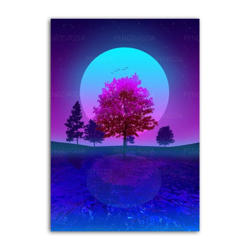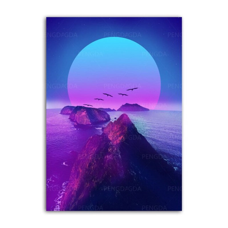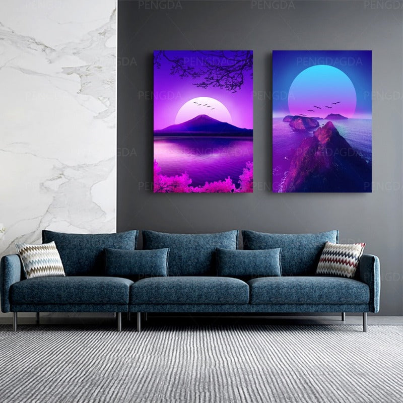 Synthwave Fuji is a premium canvas that adds a touch of retro vibes to your décor. The canvas features the big moon in neon settings. These super cool designs would add a perfect pop of color to your walls.