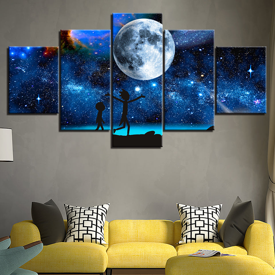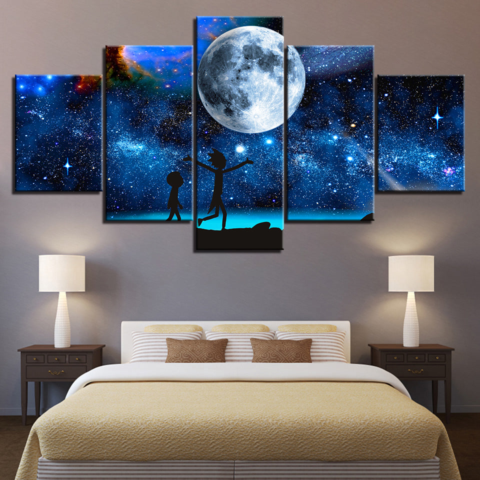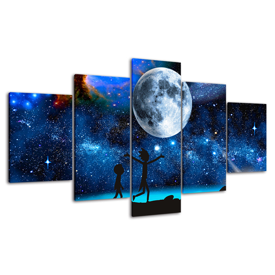 The Moon In The Galaxy - Canvas Wall Art Painting is a premium canvas that adds a touch of the world to your décor. The canvas features an exciting scene of two characters looking at the big world in the galaxy. This is great to place in a bedroom, living room, or dining room.