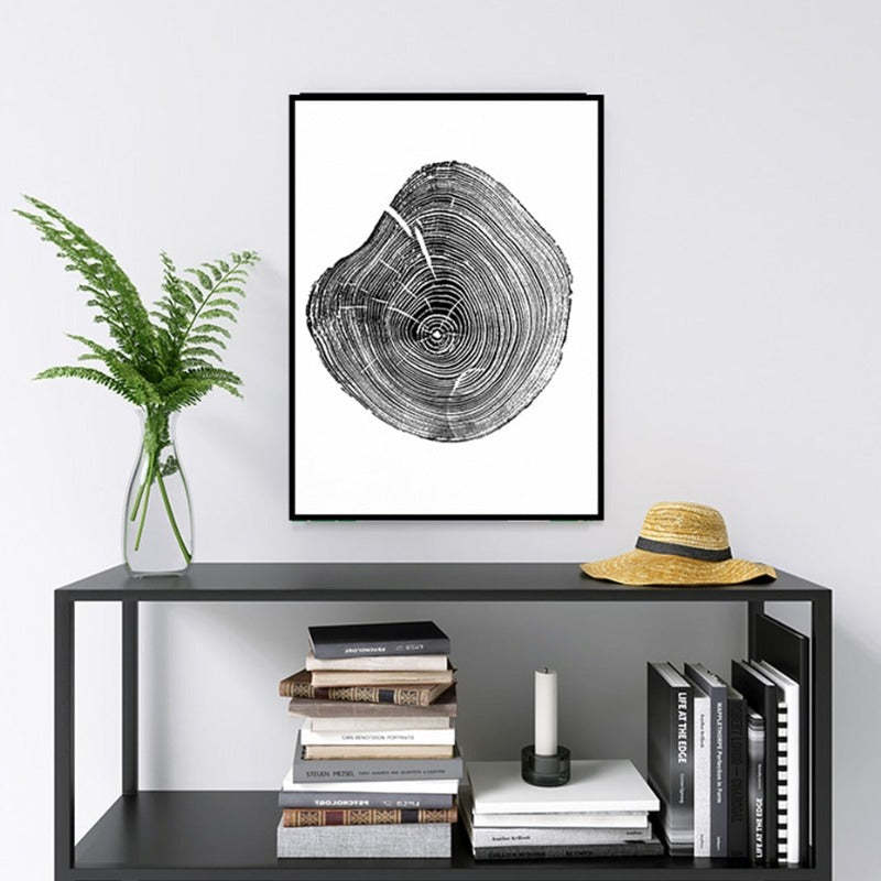 Tree Annual Rings Black and White - Canvas Wall Art Painting