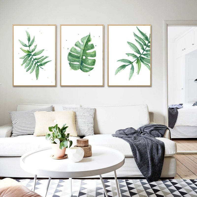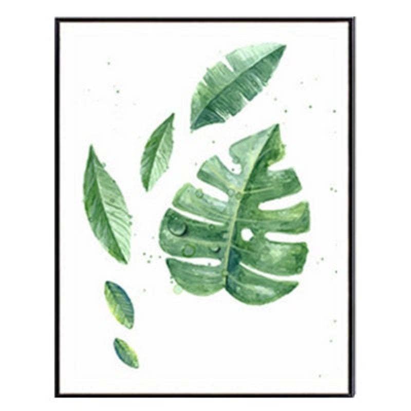 Tropical Green Leaves Plants - Canvas Wall Art Painting is a tropical leaf abstract painting with the spray painting technique in a vertical rectangle shape made from canvas material suitable for every living space for Decor, It is available in a variety of designs and abstract shapes making it ideal for gifting in every occasion.