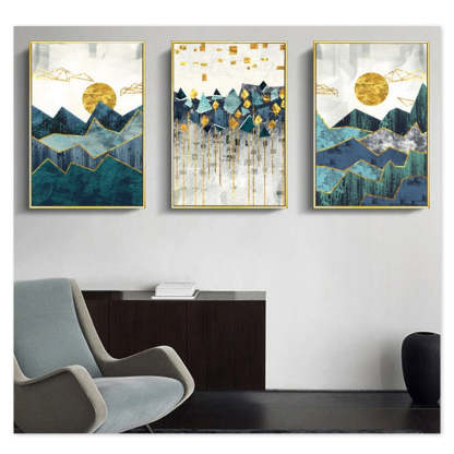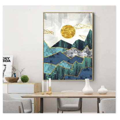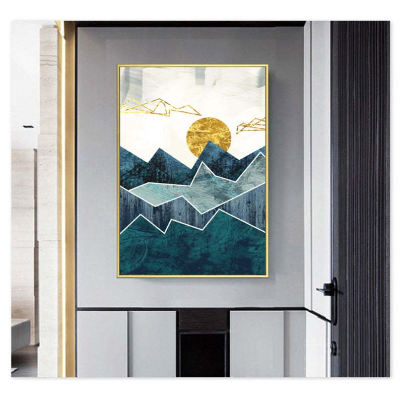 Vintage Abstract Geometric Sunrise Scene Wall Art - Canvas Wall Art Painting is an abstract geometric sunrise poster that comes without a frame, made from waterproof Ink with the spray painting technique in a vertical rectangle shape made from canvas material suitable for every living space for Decor, It is available in a variety of designs making it ideal for gifting in every occasion.