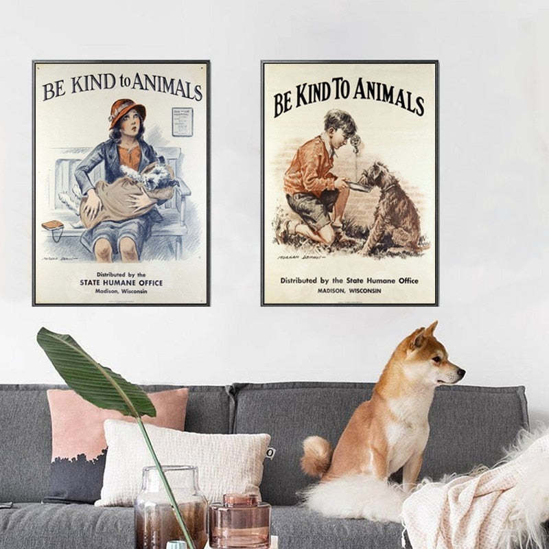 Vintage Be Kind to Animals - Canvas Wall Art Painting