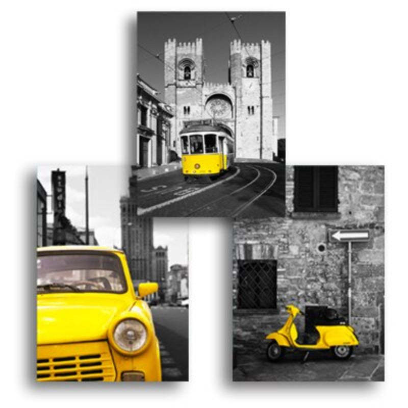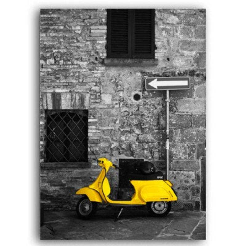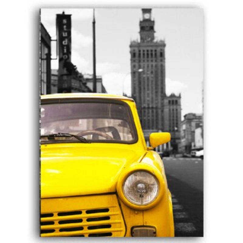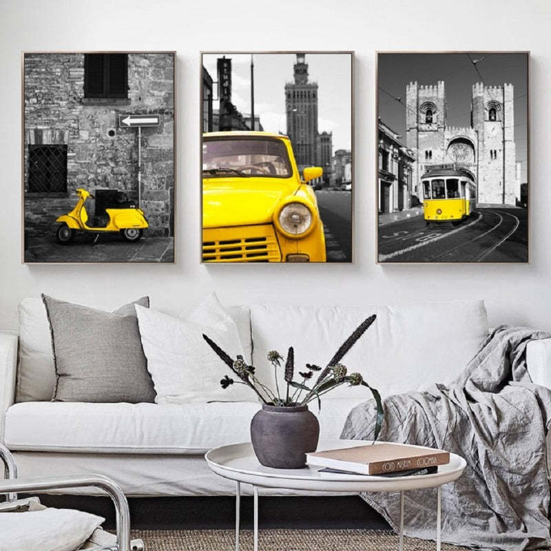 Vintage Yellow City Bus Scene is a premium canvas that adds a bright touch to your decor. The canvas features a bright yellow transpiration vehicles in a black and white background that you can hang on your walls.