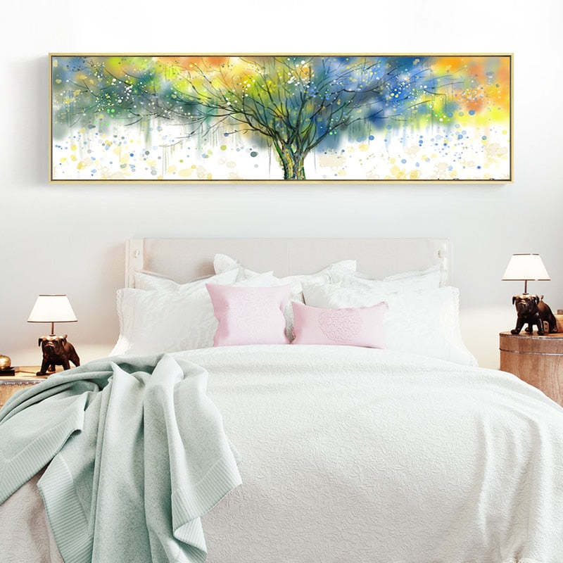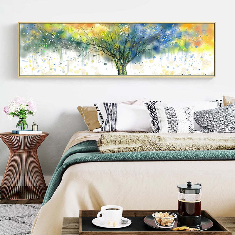 Watercolor Dense Tree Prints is a premium canvas that adds a beautiful touch to your decor. The canvas features bright colored leaves on a tree that you can hang on your walls.