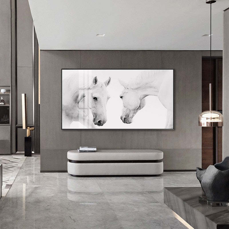 White Horses is a premium canvas that adds a touch of elegance to your decor. The canvas features two white horses.