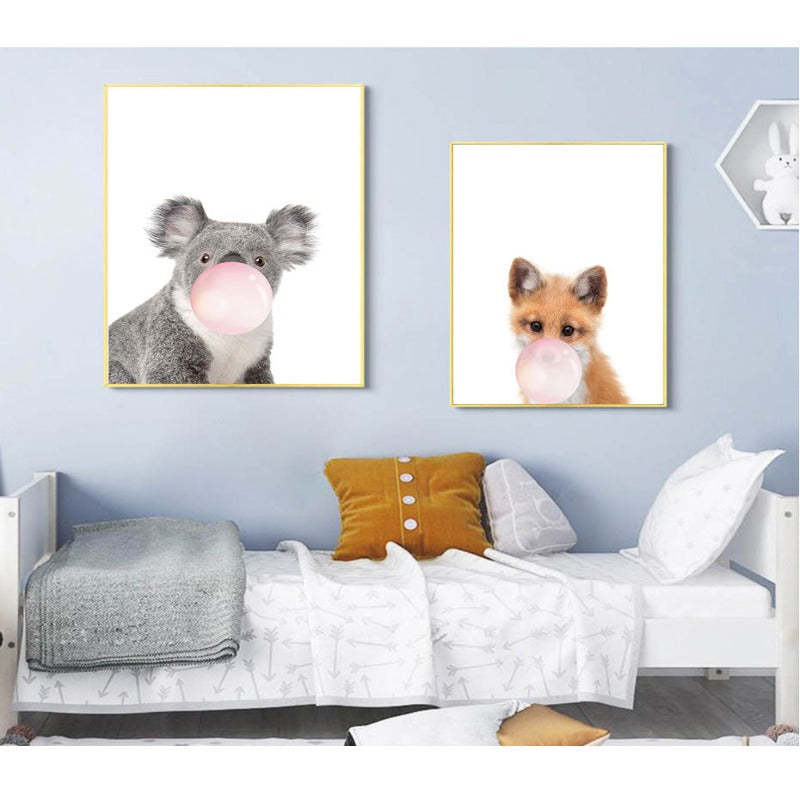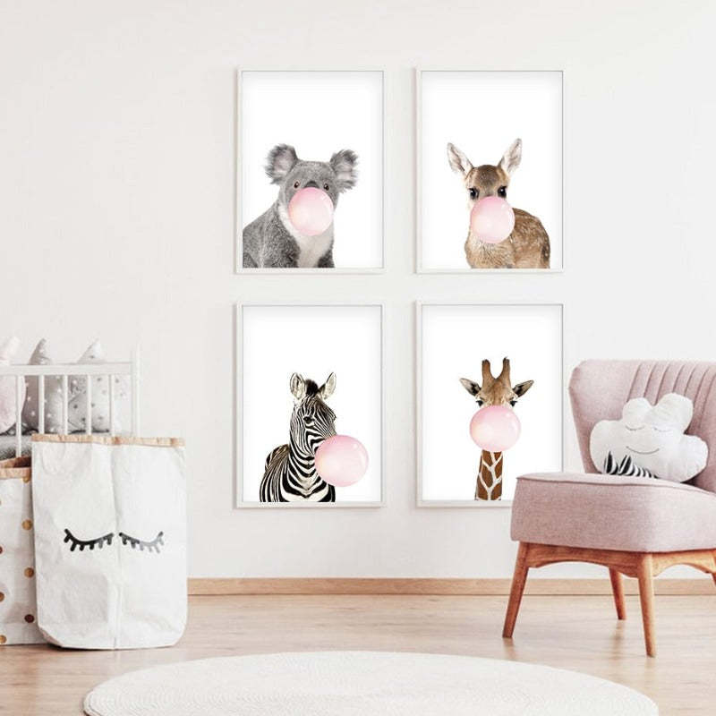 Wild Life At Party is a premium canvas that adds a cute touch to your decor. The canvas features cute animals blowing bubble gum that you can hang on your walls.
