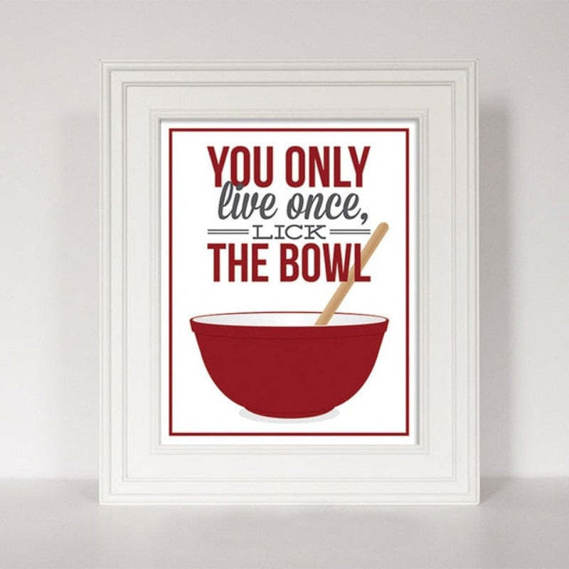 You Only Live Once is a premium canvas that adds a cool touch to your decor. The canvas features a collection of kitchen essentials that you can hang on your walls.